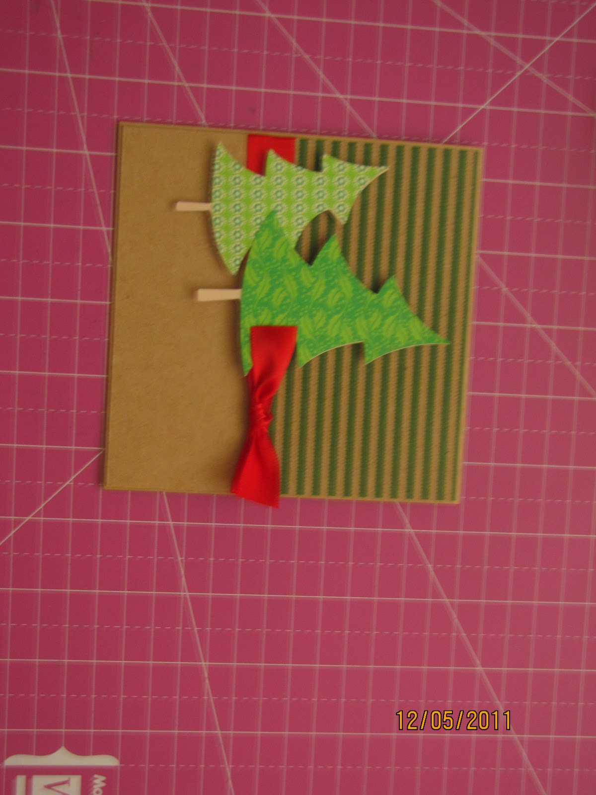 Once you have the trees on the front of you card you will then cut another length of ribbon and then just tie a knot to make it look like a little bow.